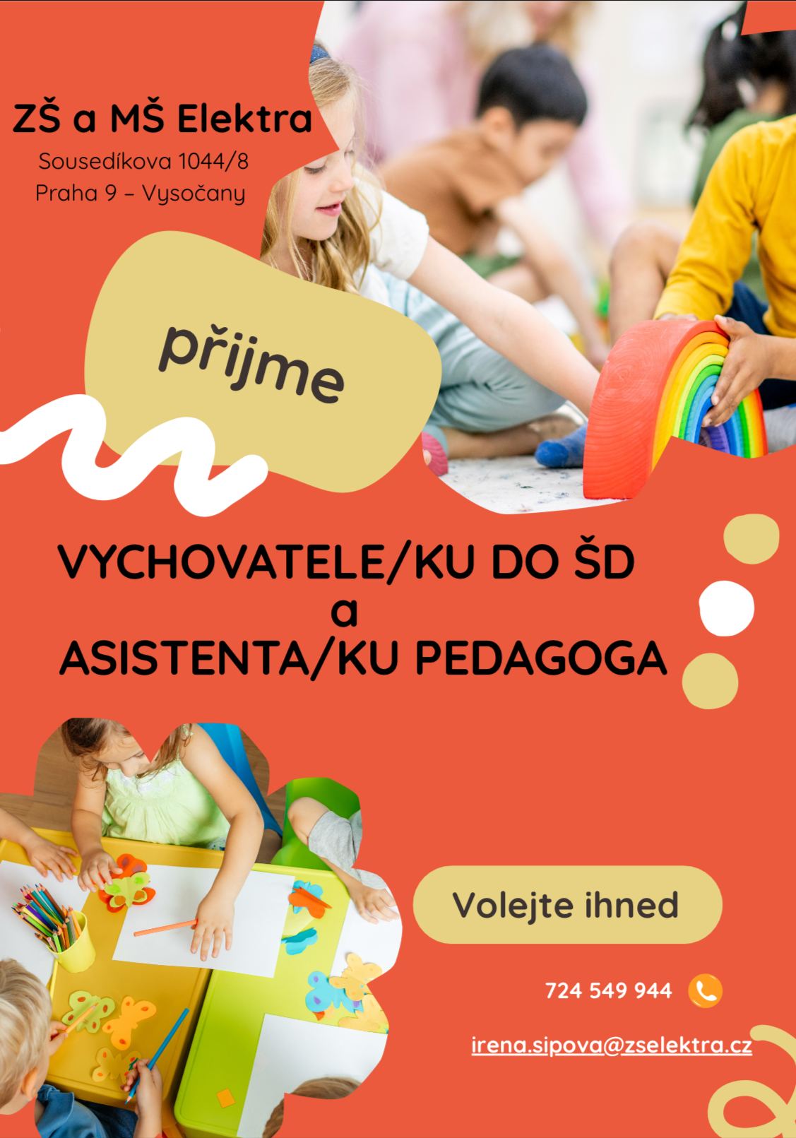 ZŠ a MŠ Elektra v Praze Vysočanech přijme asistenta pedagoga na plný úvazek. Nástup možný ihned.
