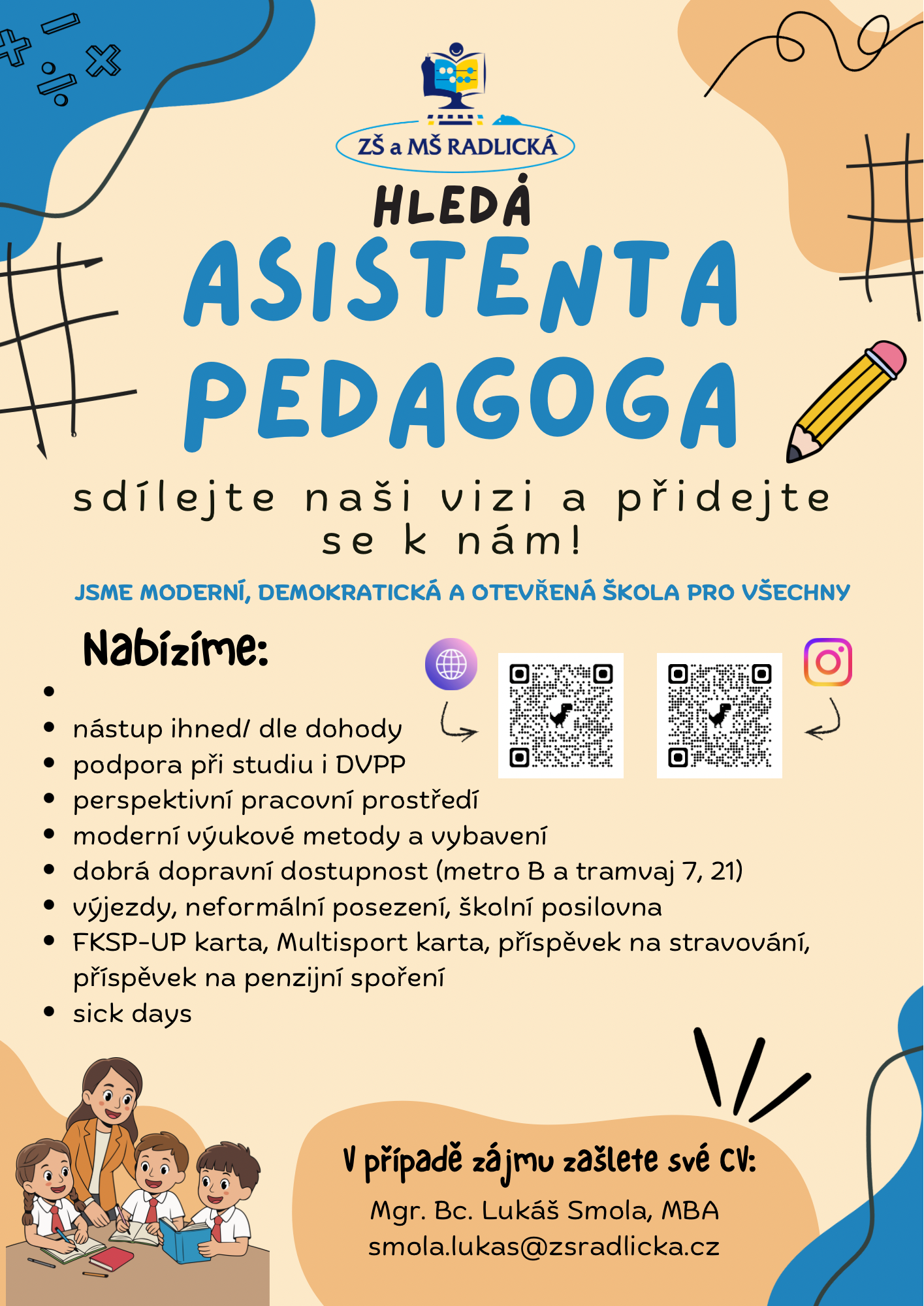 Vznikl nám nový nárok na asistenty pedagoga, a proto hledáme nové parťáky na pozici AP na naší ZŠ i MŠ.